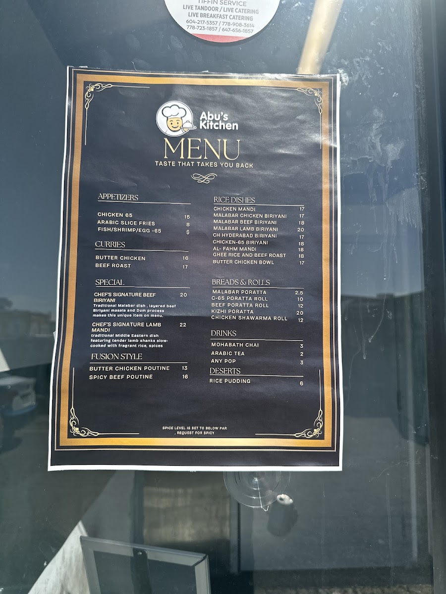For those planning special events or looking to cater, Abu's Kitchen offers several pre-order and catering options. The Chilli Chicken Tray, Chicken-65 Tray, and Tandoor Chicken Tray are all available for large orders, making it easy to bring the restaurant's bold flavors to your next gathering.